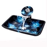 Add a touch of elegance to your bathroom with a glass sink combo from Kraus. Stylish glass sink and matching waterfall faucet will complement any bathroom decor Installing Kraus combo is an ideal home improvement project. Glass sink is constructed from solid tempered glass. Sink features smooth interior with a vibrant color pattern. Various shades of blues ranging from deep dark ocean blues to light shades of sky blue are combined together to create this unique vessel sink design. Designed for above counter installation with standard US plumbing connections. Solid brass umbrella pop-up drain is included in the same finish as the faucet. 21.875-Inch L x 13.875-Inch Weight: 4-Inch Glass thickness: 0.6-Inch (15 mm) 1.75-Inch standard drain opening Manufactured by Kraus. Limited Lifetime Warranty. Certified and Listed by UPC, cUPC, CSA, IAPMO, ANSI and SCC. The handcrafted nature of this product will produce minor differences in design and sizing. Subtle variations will occur from piece to piece, adding to its unique qualities. Measurements may vary slightly. Waterfall faucet is constructed from solid brass. Available in Chrome, Satin nickel, Antique brass; Oil rubbed bronze and Gold finishes. High-quality ceramic cartridge. Single-hole, top-mount installation. Single lever water and temperature control. Standard US plumbing connections. All mounting hardware and hot/cold waterlines are included. 7-Inch matching glass plate made of tempered glass. Faucet height (overall): 13-Inch Spout height: 8-Inch. Spout reach: 5.5-Inch. ADA compliant. Manufactured by Kraus. Limited Lifetime Warranty. Sink is made from tempered glass faucet is constructed from solid brass All mounting hardware and hot/cold waterlines are included Matching umbrella pop up drain and mounting ring are included Limited lifetime warranty Certified and listed by upc cupc csa iapmo ansi and scc